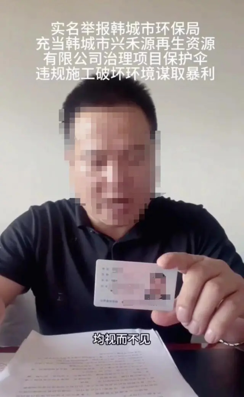8月29日,陕西渭南韩城市一男子发布实名视频,举报当地一资源再生企业违规施工、破坏环境,致70万吨垃圾流入黄河,当地环保部门对群众举报视而不见,充当企业“保护伞”,视频引发关注。