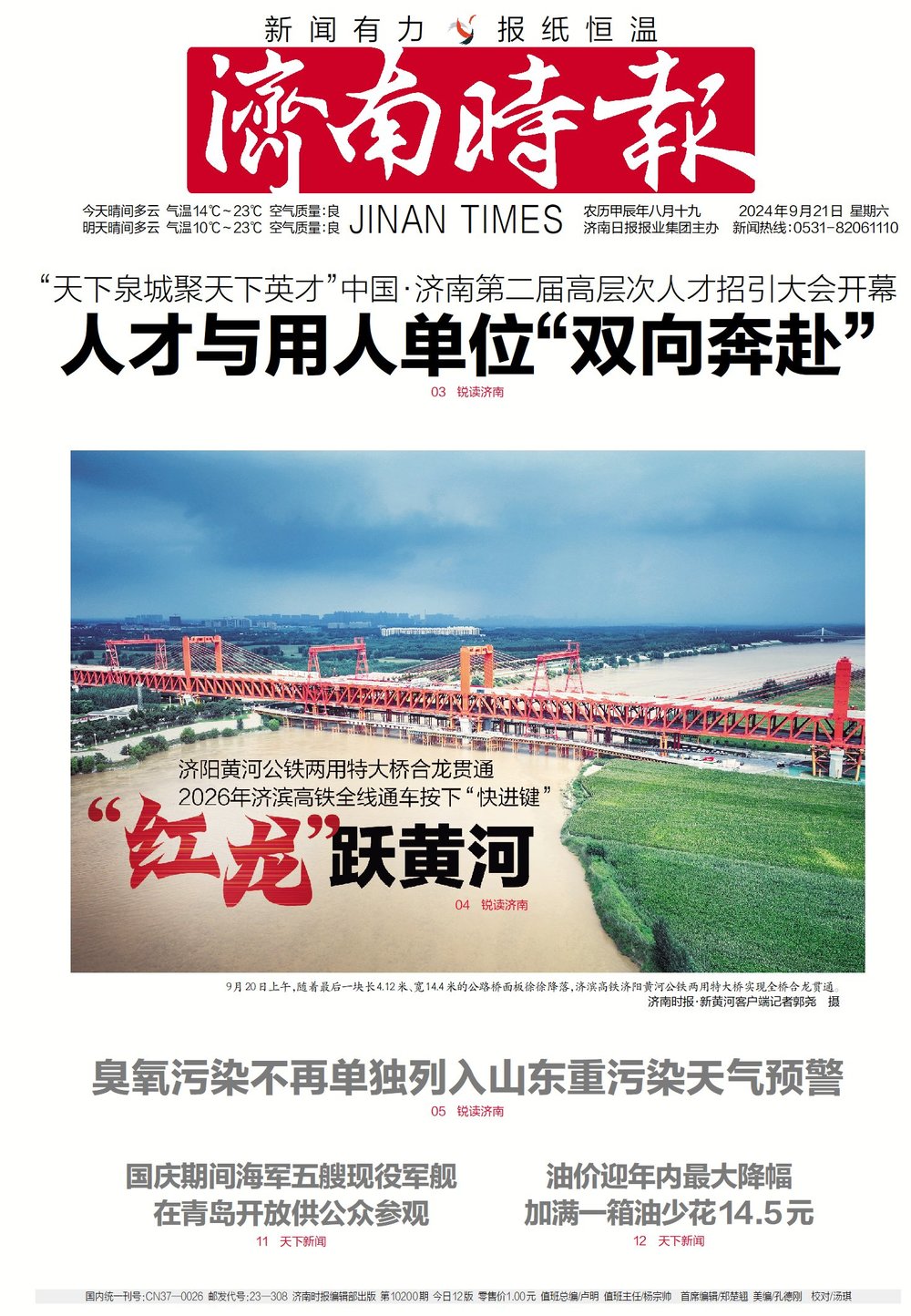 ●济阳黄河公铁两用特大桥合龙贯通,为2026年全线通车按下“快进键”