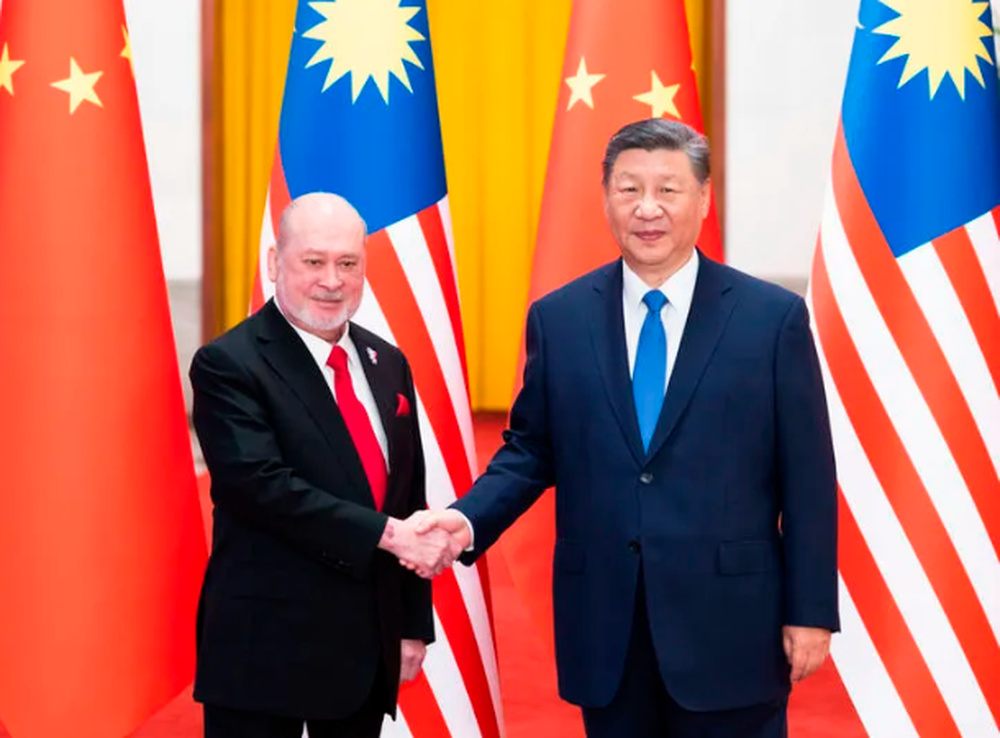 ●20日,习近平在北京人民大会堂同来华进行国事访问的马来西亚最高元首易卜拉欣举行会谈。