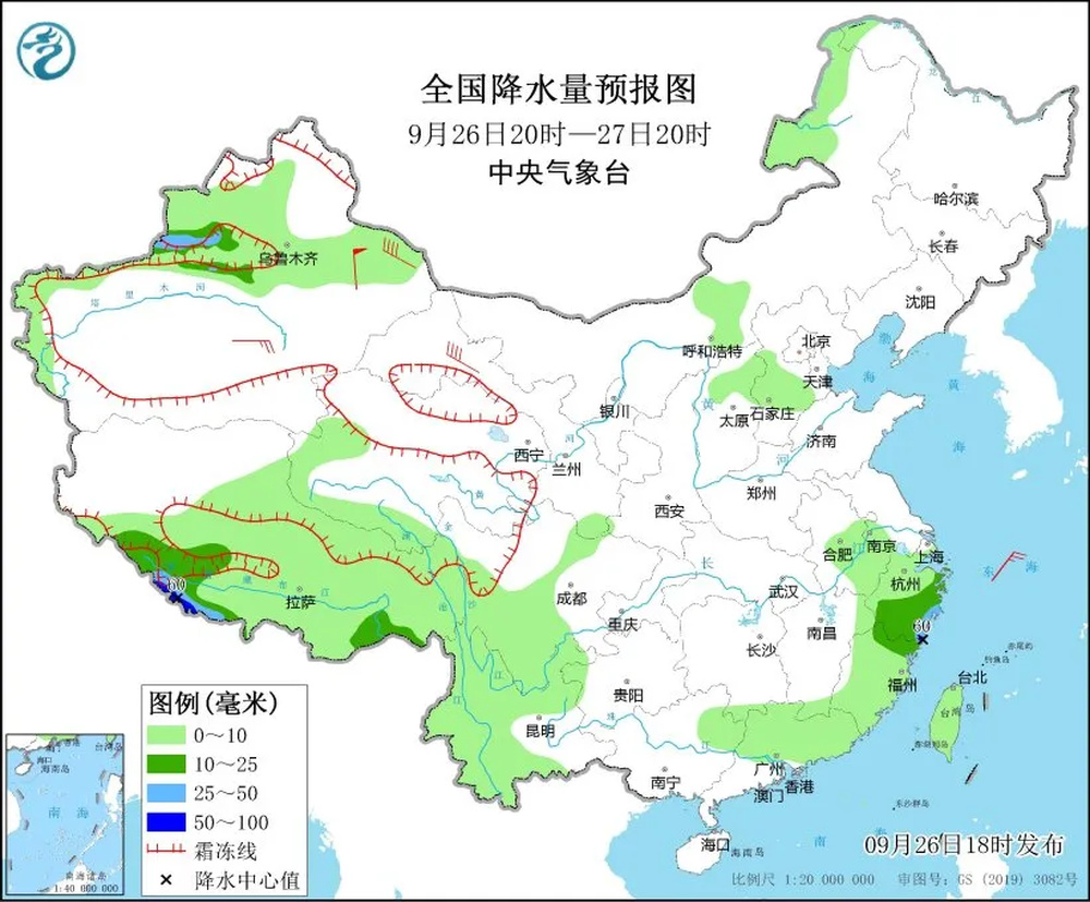 ●中央气象台预计,26日20时至27日20时,新疆伊犁河谷、浙江中南部等地部分地区有中到大雨;西藏西南部有中到大雪,局地暴雪或特大暴雪。