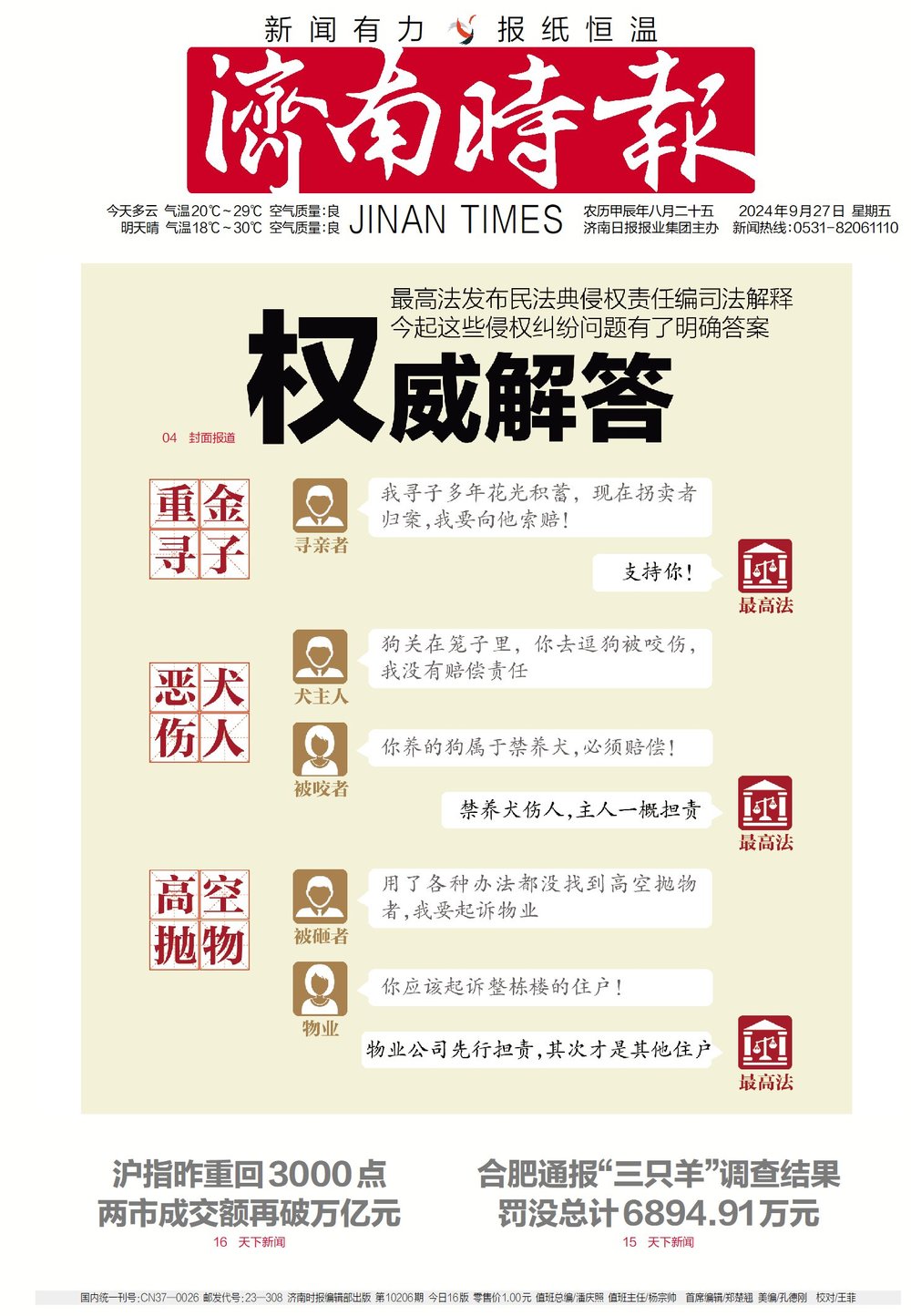 ●最高人民法院26日发布适用《中华人民共和国民法典》侵权责任编的解释,自9月27日起施行。其中明确,未成年子女侵权,离异夫妻共同担责;禁止饲养的烈性犬造成他人损害,饲养人承担全部责任等。