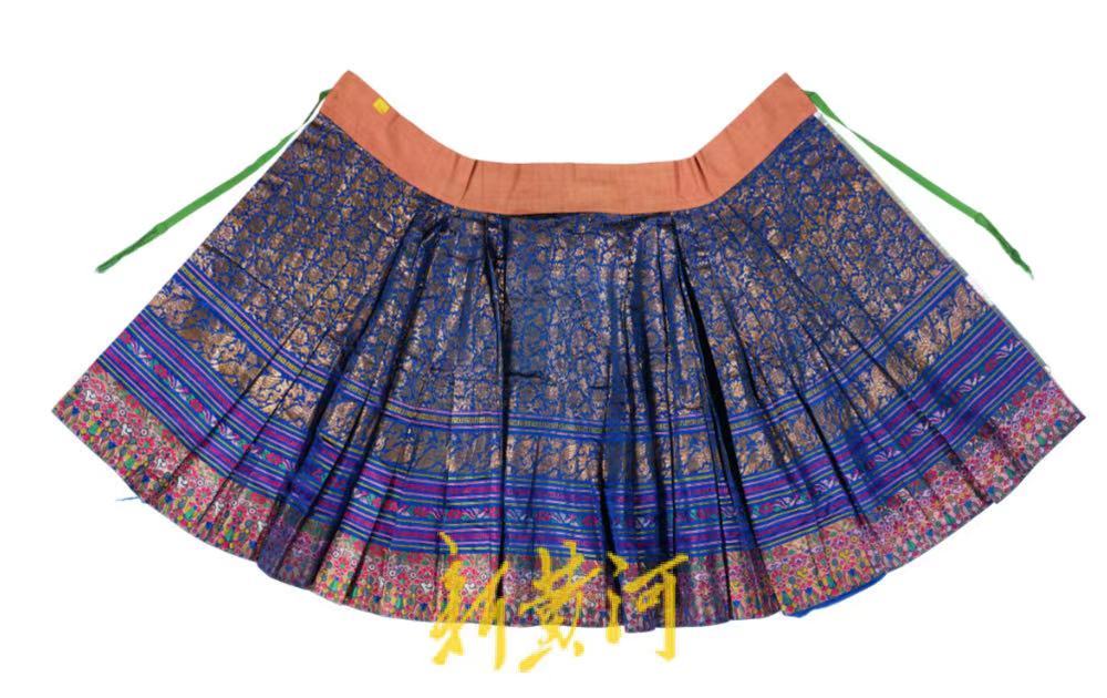 山东博物馆收藏着一条蓝色缠枝四季花织金妆花缎裙,被誉为明代传世马面裙的标杆,是山东博物馆的明星藏品。山东博物馆书画部主任于芹介绍,这件马面裙为孔府旧藏,一般推断为衍圣公夫人的服饰(衍圣公为孔子嫡长子孙的世袭封号),也有可能是孔府其他尊贵女性的穿着。