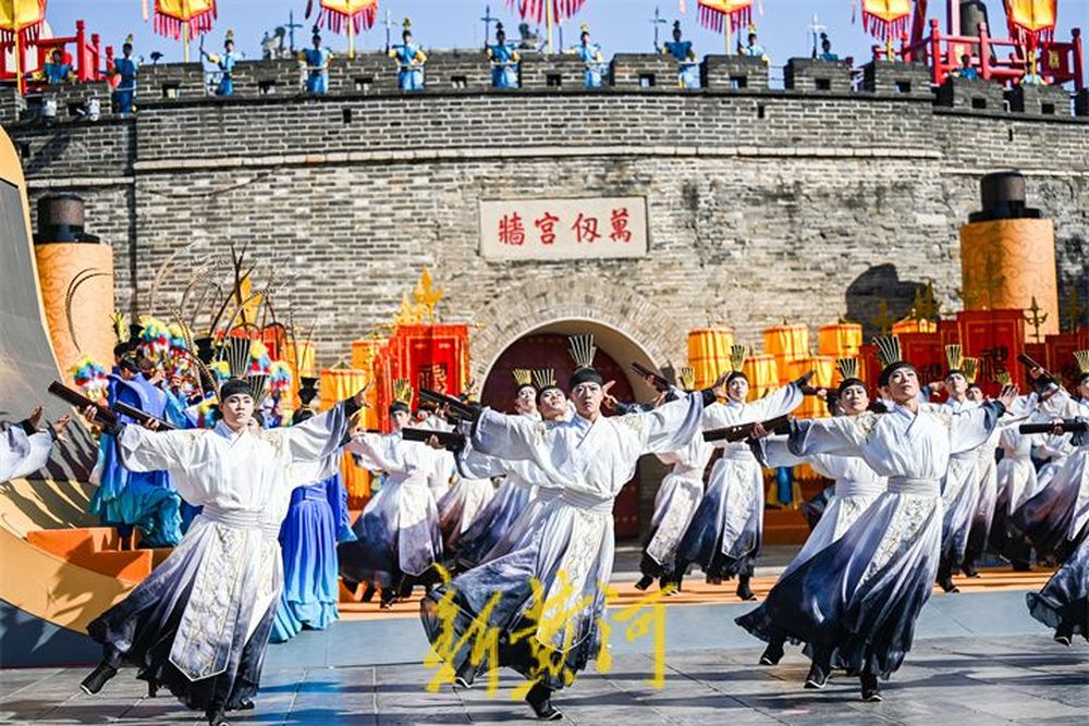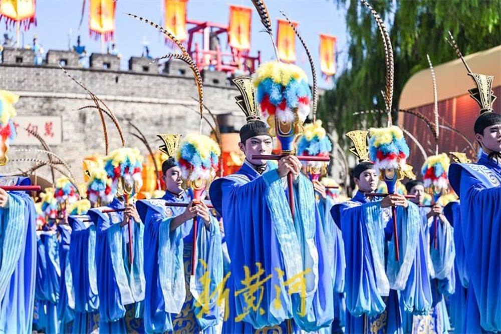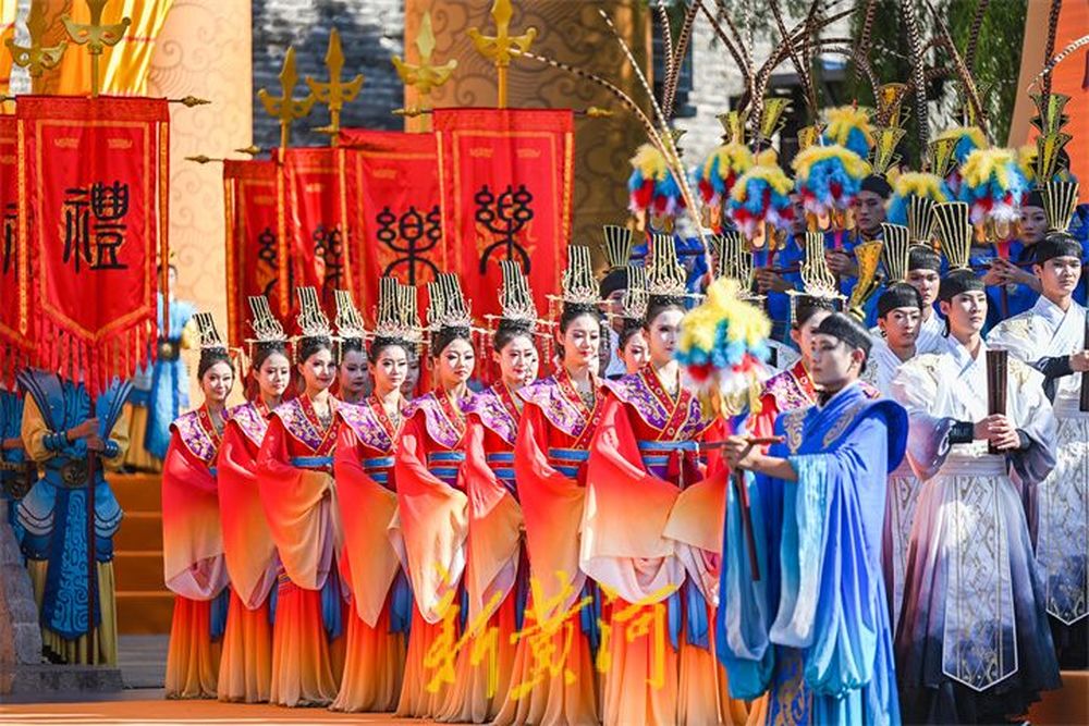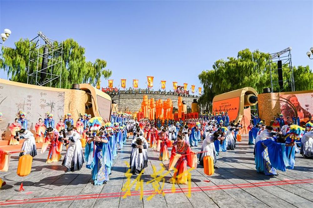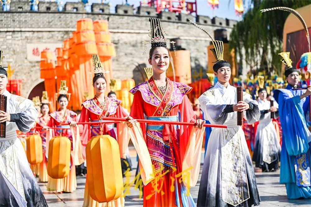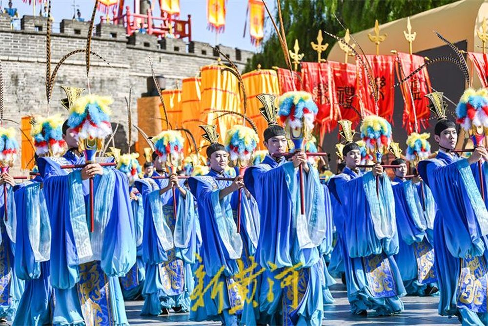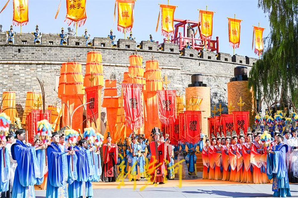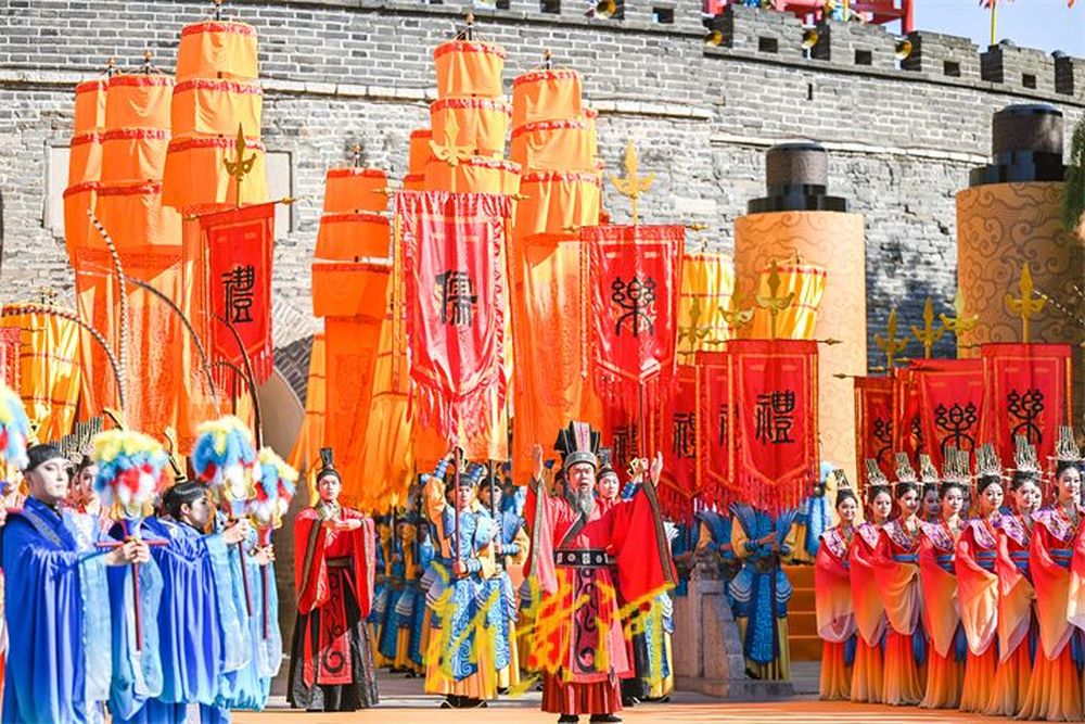 在孔庙的万仞宫墙前,祭孔大典首次设计仪仗式开城。