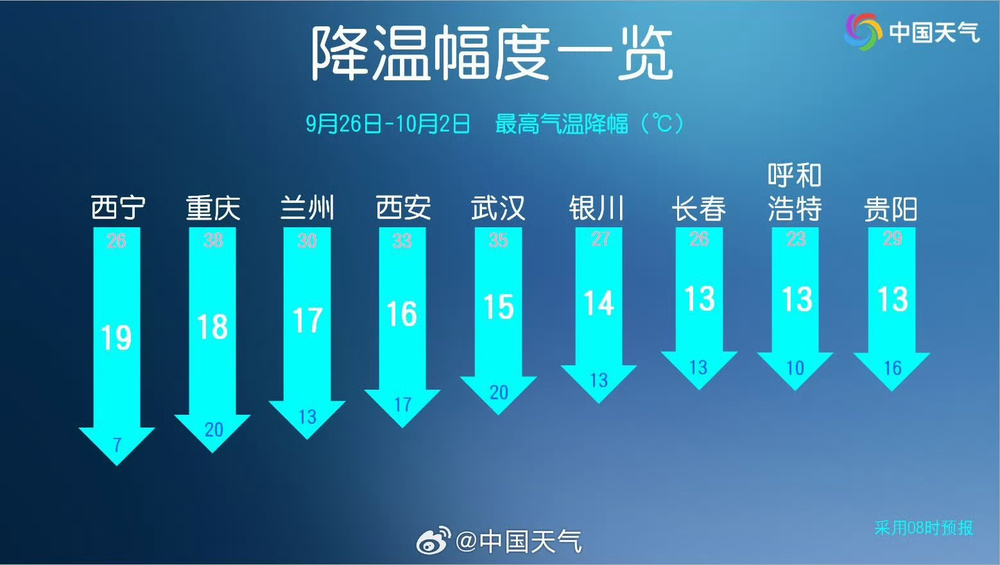 9月30日起,南方也将迎来大范围降温。特别是在西南地区,在冷空气和降雨的共同影响下,局地单日最高气温降幅可超10℃。