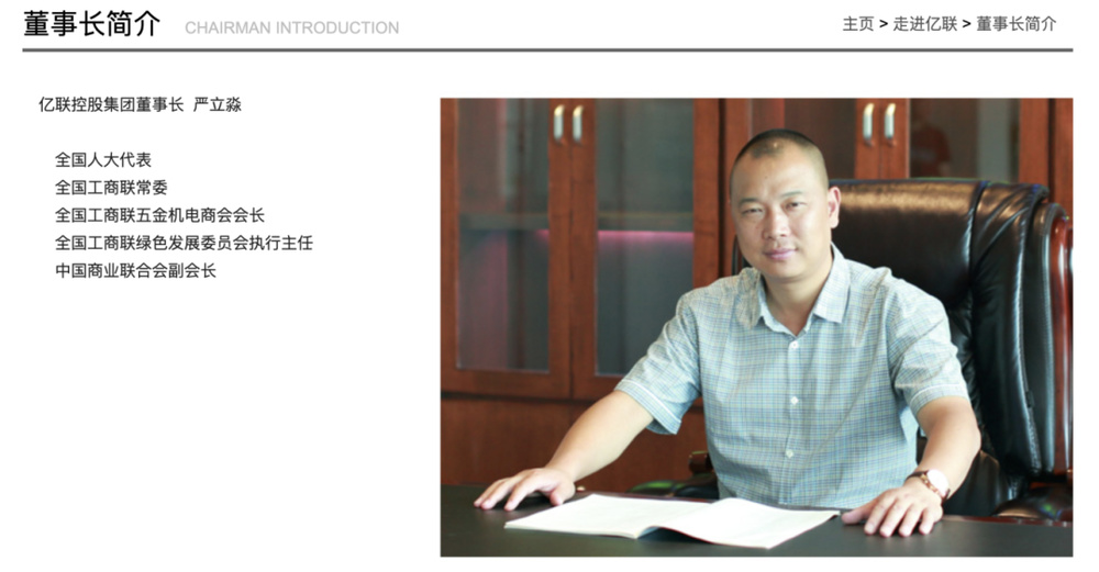 亿联控股集团官网资料显示,严立淼先后当选全国人大代表、全国工商联常委、全国工商联五金机电商会会长、全国工商联绿色发展委员会执行主任、中国商业联合会副会长、天津市工商联副主席、全国温州商会常务副会长。先后荣获全国脱贫攻坚先进个人、全国光彩事业发起25周年纪念奖章、中央统战部优秀党务工作者、全国工商联优秀党务工作者、2020年中国民营经济十大新闻人物、天津市劳动模范、首届天津慈善行为楷模奖、首届天津爱心捐赠奖、第七届浙江省“慈善楷模奖”、浙江省“绿叶奖”等称号。
