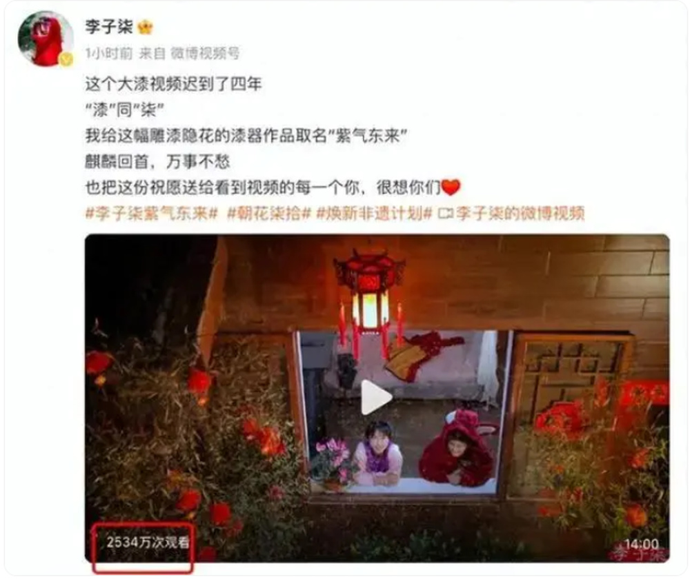 2021年11月,李子柒以武汉文化旅游博览会推荐官的身份录制视频,邀请大家“打卡”展馆。