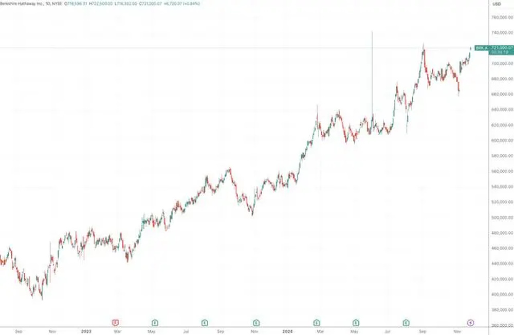 伯克希尔A类股日线图,来源:TradingView