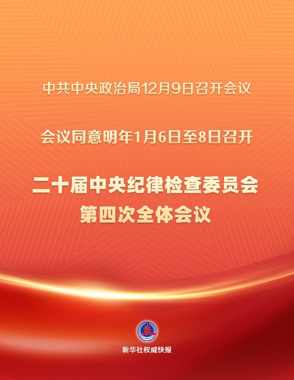 会议同意明年1月6日至8日召开二十届中央纪律检查委员会第四次全体会议