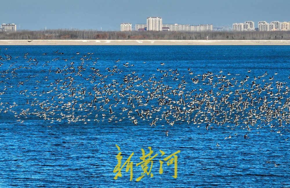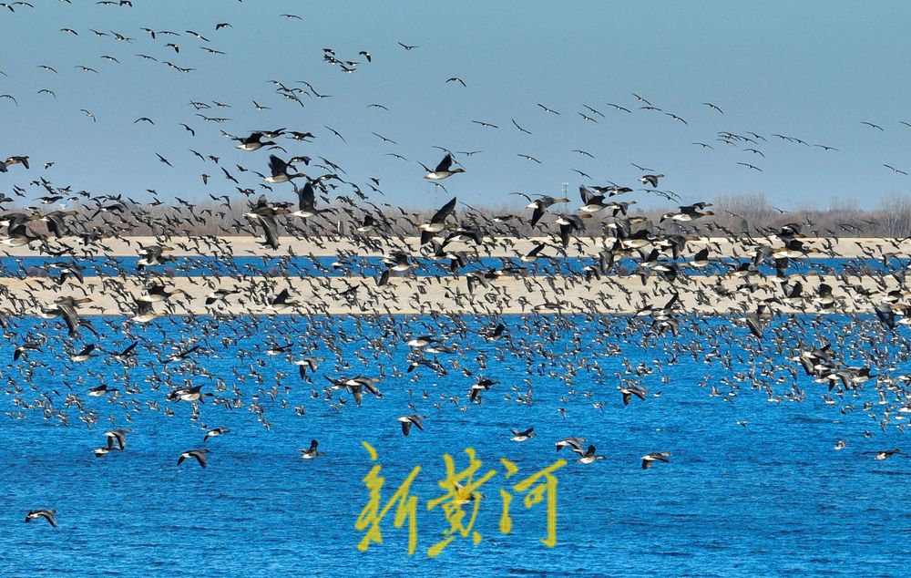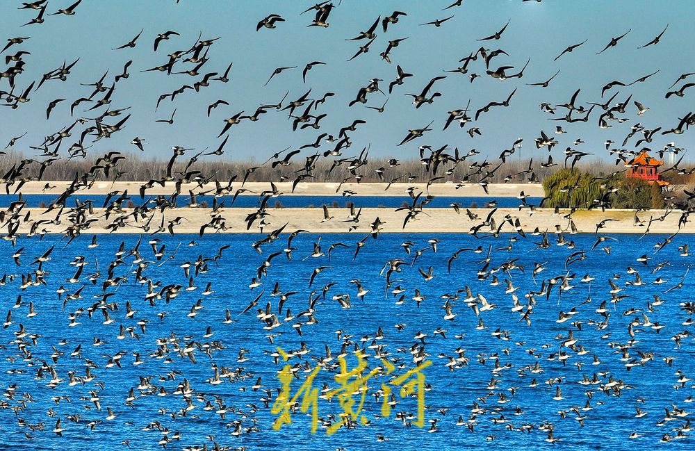 12月21日,正值冬至节气,从这天开始进入数九寒天。位于济南市西部的玉清湖水库水面上,一群越冬候鸟时而空中飞舞,时而在水面歇息、觅食,与蓝天、碧水勾勒了一幅人与自然和谐共生的生态画卷,成为冬日里一道独特的风景。