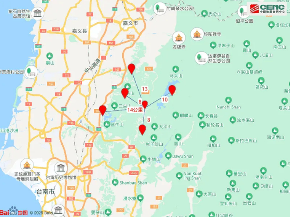 周边县城:震中距东山区8公里、距楠西区8公里、距大埔乡10公里、距白河区13公里、距六甲区14公里,距嘉义市28公里,距台北市227公里。