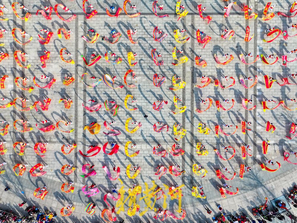 表演者们手持彩带龙,伴随着铿锵有力的鼓点,舞动出流畅而富有力量的姿态。龙头灵动,龙身彩绸翻飞,现场观众掌声不断,喝彩连连。此次活动不仅弘扬了传统民俗文化,也展现了现代健身的活力,为“龙抬头”增添了浓厚的节日氛围。