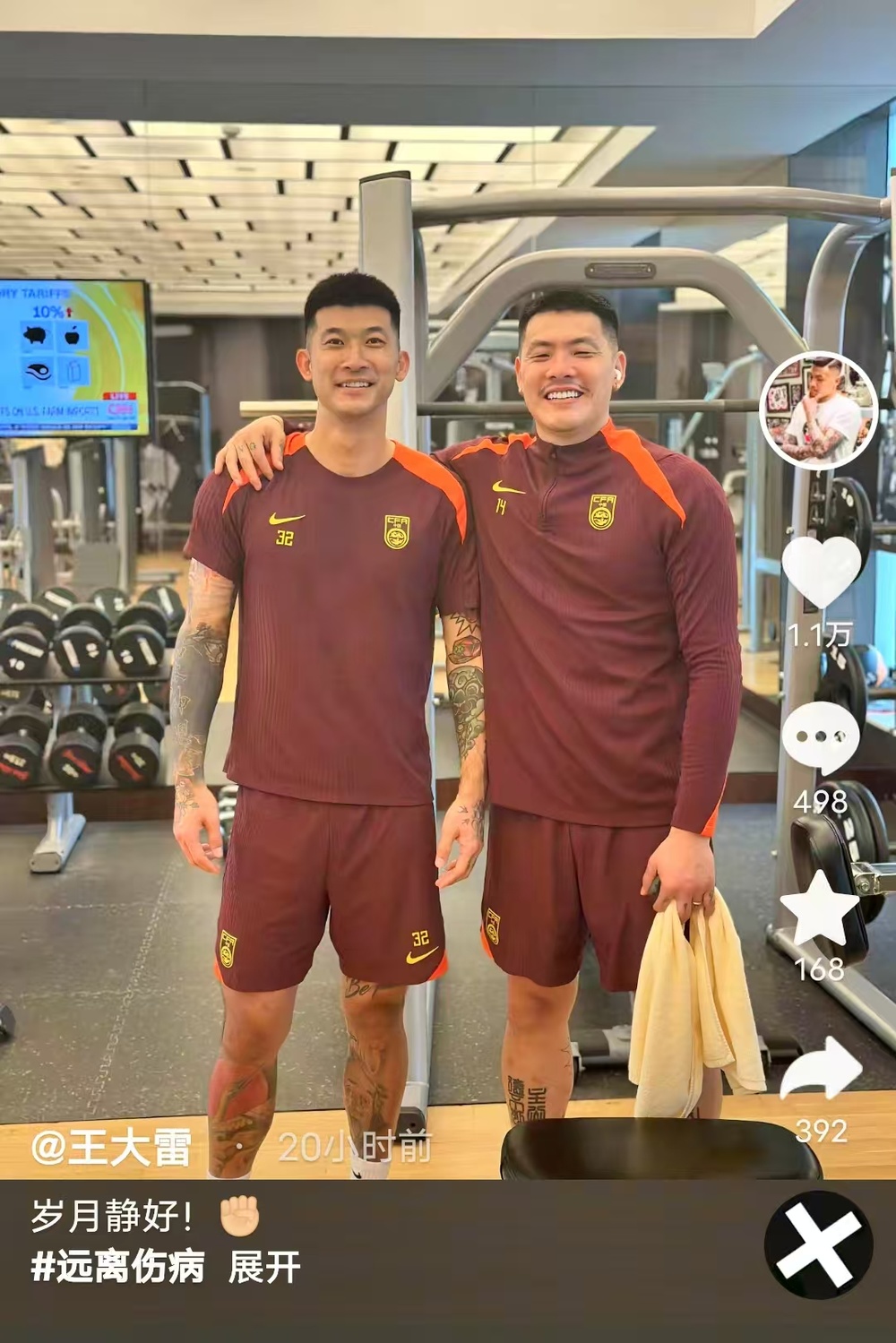 “岁月静好!”在社交媒体上,正随国足集训的泰山队门将王大雷,晒出自己与刘殿座的合影,定位地址显示,他已身处阿联酋。1989年出生的王大雷与1990年出生的刘殿座,都算得上是国足阵中的老将,他们均出自大连的东北路小学,私交甚笃。