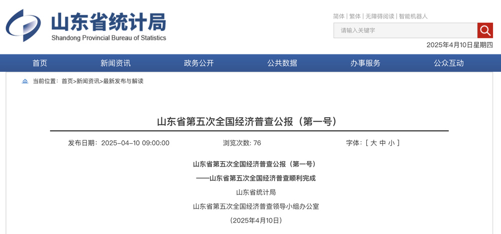 第五次全国经济普查是在我国迈上全面建设社会主义现代化国家新征程、向第二个百年奋斗目标进军的关键时刻开展的首次重大国情国力调查,也是对经济社会发展情况的一次全面体检。2024年1月1日至4月30日,山东省顺利完成普查对象基本情况、组织结构、人员工资、财务状况、生产经营、能源生产与消费、固定资产投资、研发活动、信息通信技术应用和数字化转型情况、数字经济活动、投入产出情况等有关数据的采集工作,全面调查了山东省第二产业和第三产业发展规模、布局和效益,摸清了各类单位基本情况,掌握了国民经济行业间经济联系,客观反映了山东省主动服务和融入新发展格局,扎实推动高质量发展,全面深化改革,深入实施“三个十大”行动,着力推进区域协调,塑强“十个新优势”,加快建设绿色低碳高质量发展先行区,打造高水平对外开放新高地等方面的新进展,为锚定“走在前、挑大梁”,奋力谱写中国式现代化山东篇章提供真实可靠的统计支撑。