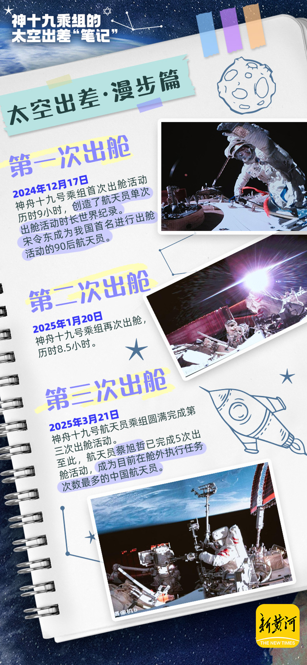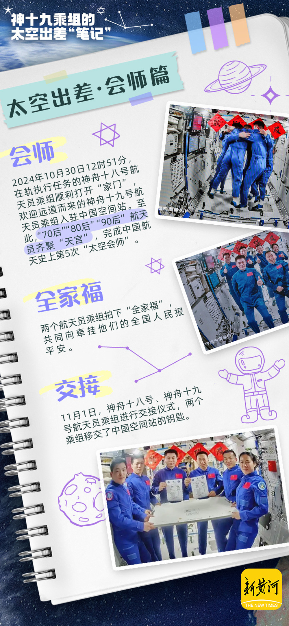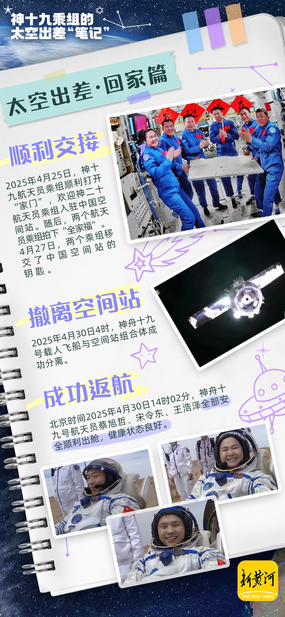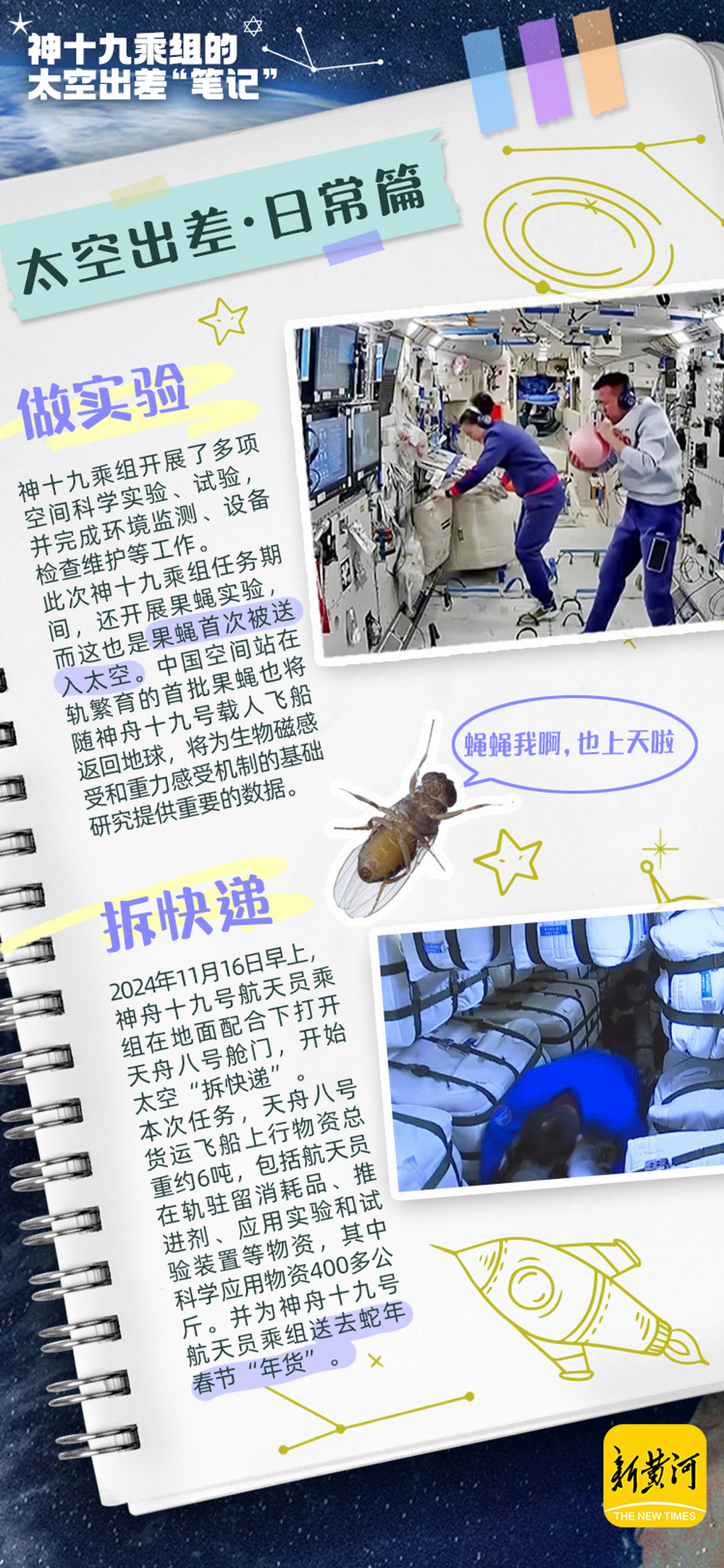 从出征到返回,神十九乘组在轨飞行超过180天。让我们通过一组太空出差“笔记”,回顾神舟十九号给我们留下的难忘瞬间!