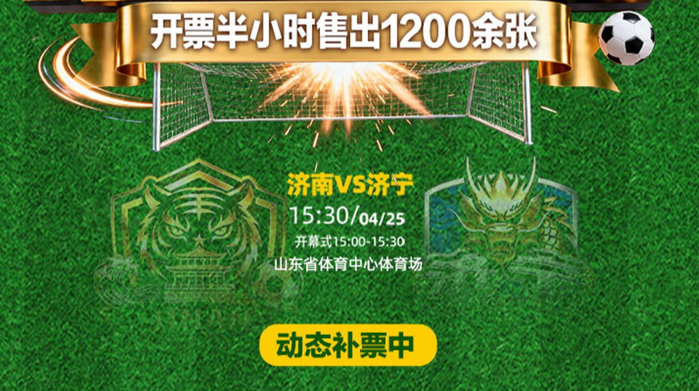 半小时售出1200余张!齐鲁超赛济南赛区门票热销,多平台紧急动态补票