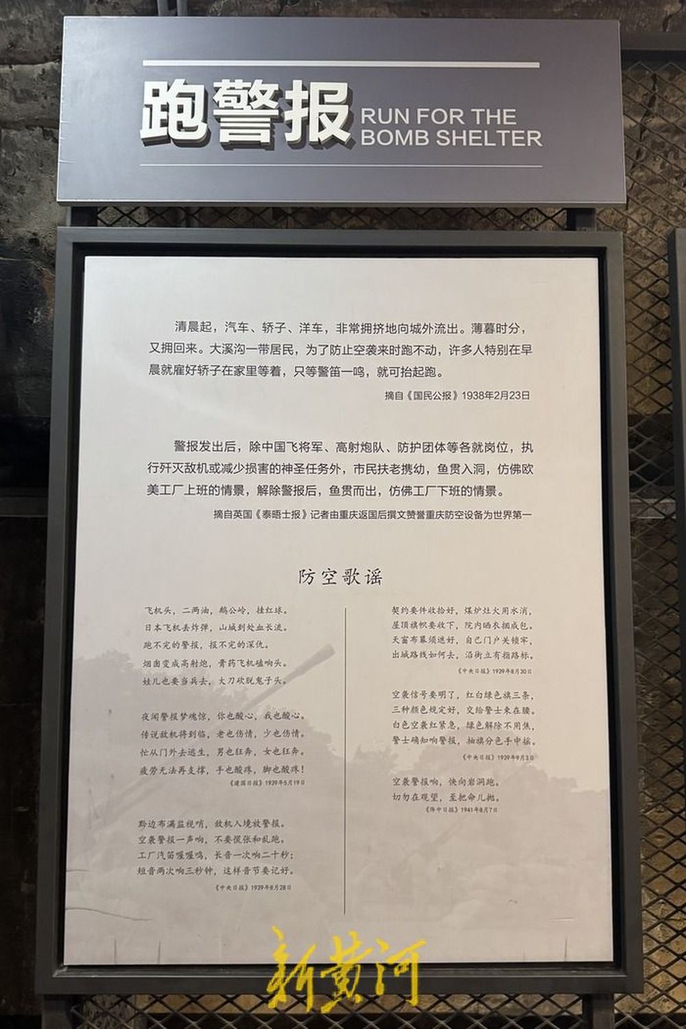 十八梯大隧道遗址纪念馆内展示的《跑警报》防空歌谣