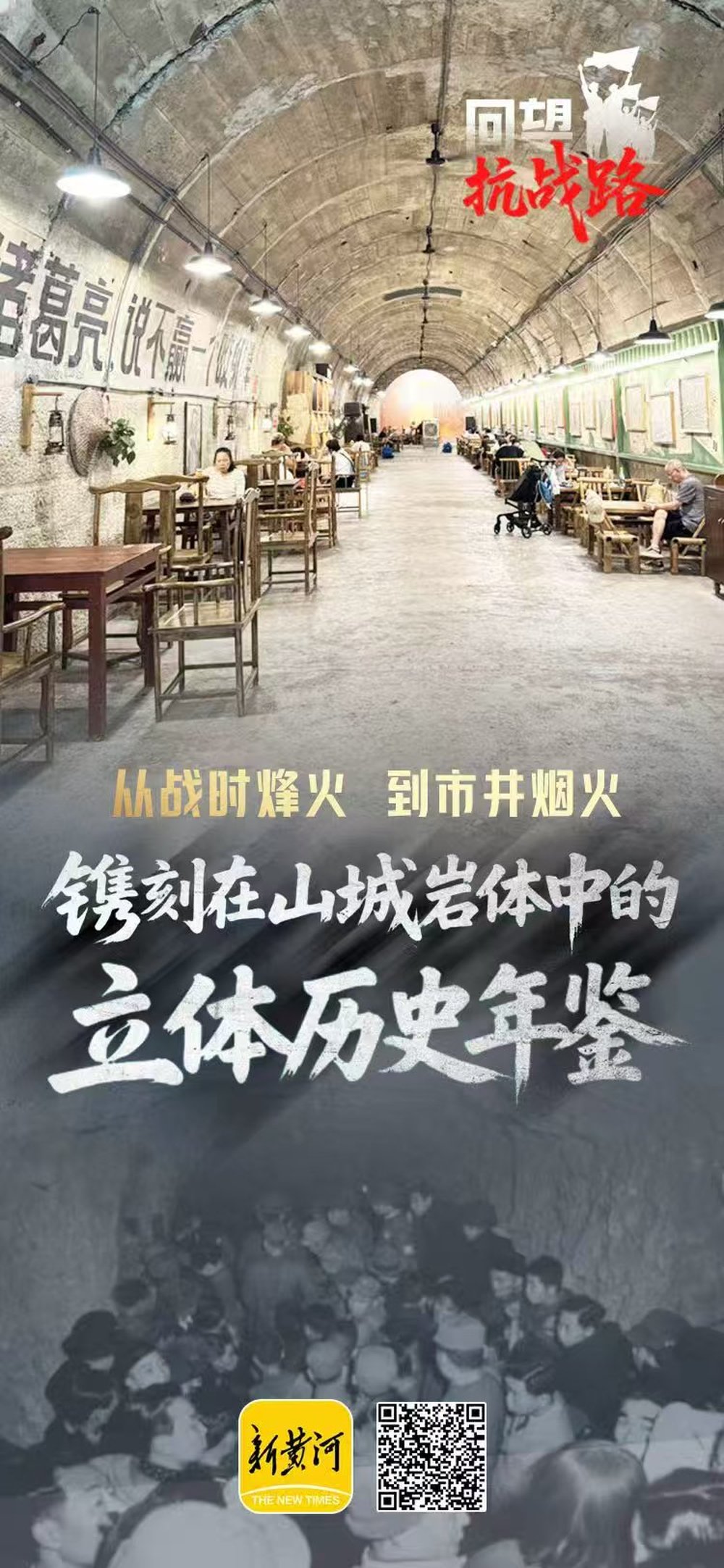 硝烟弥漫的抗战时期,一座座防空洞是重庆人民的“地下之家”。在日军长达6年零10个月的无差别轰炸中,它们曾守护百万生灵,岩壁上至今镌刻着《跑警报》的惊心岁月。八十年后,它们以茶馆、餐厅、加油站、纳凉点、纪念馆等身份重生,既是市民日常的烟火场所,也是游客追寻历史、体验山城魅力的文化地标。从庇护所到“城市会客厅”,防空洞仿佛镶嵌在山城肌理中的时空胶囊,既承载着血与火的民族记忆,又跃动着重塑与创新的现代脉搏。它们沉默而汹涌地诉说:重庆,这座英雄之城,始终在历史长河中“洞见”未来。