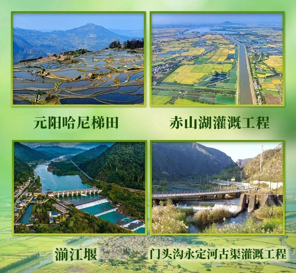 ●我国新增云南元阳哈尼梯田、江苏句容赤山湖灌溉工程、四川彭州湔江堰、北京门头沟永定河古渠4处世界灌溉工程遗产。