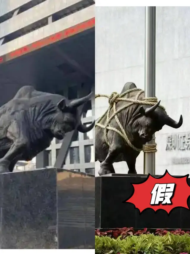 9月23日,有网民传播的图片显示,深交所门前的牛雕塑被用绳拴在一根柱子上。记者发现,深交所的牛雕塑旁边并没有柱子,其背后也没有深交所的门牌字,相关图片疑似为AI工具制作的。