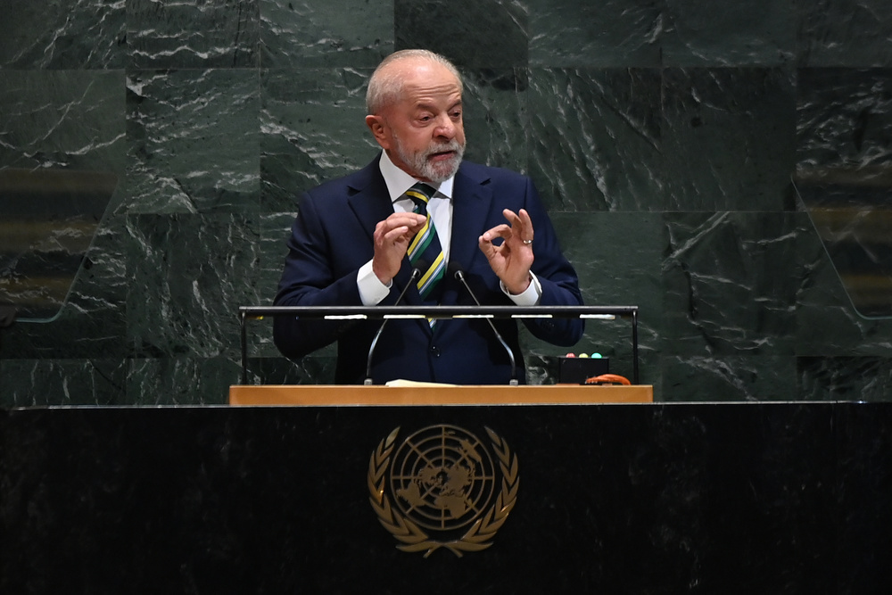 9月23日,在位于纽约的联合国总部,巴西总统卢拉出席第80届联合国大会一般性辩论时发表讲话。 新华社记者李睿摄