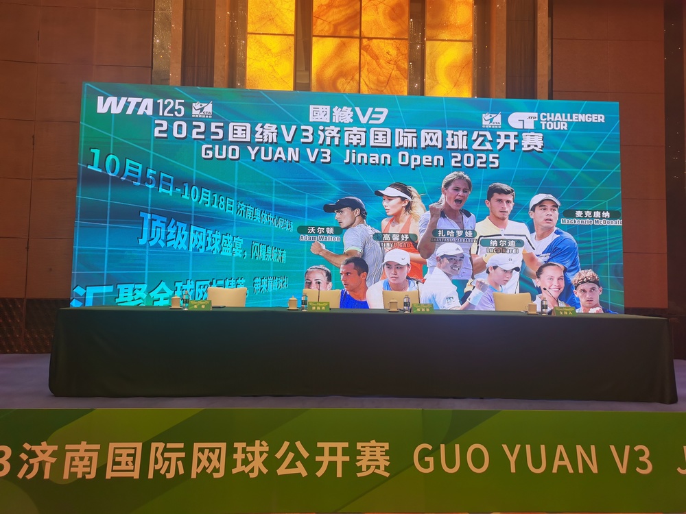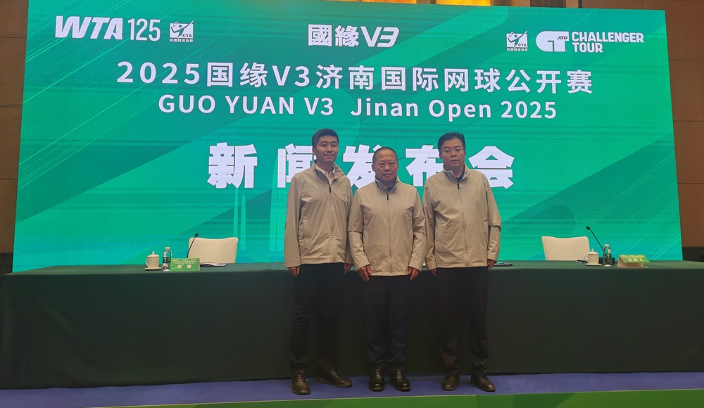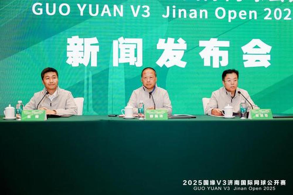 9月29日上午,2025国缘V3济南国际网球公开赛新闻发布会在济南喜来登酒店召开。山东省小球运动联合会党支部书记、主席、山东省网球运动协会会长修振涛,济南市体育局党组成员、副局长张居忠,济南文旅集团奥体中心负责人朱帅共同出席发布会,正式揭晓赛事核心信息与筹备进展,本次比赛将于10月5日至18日在济南奥体中心网球场举行。