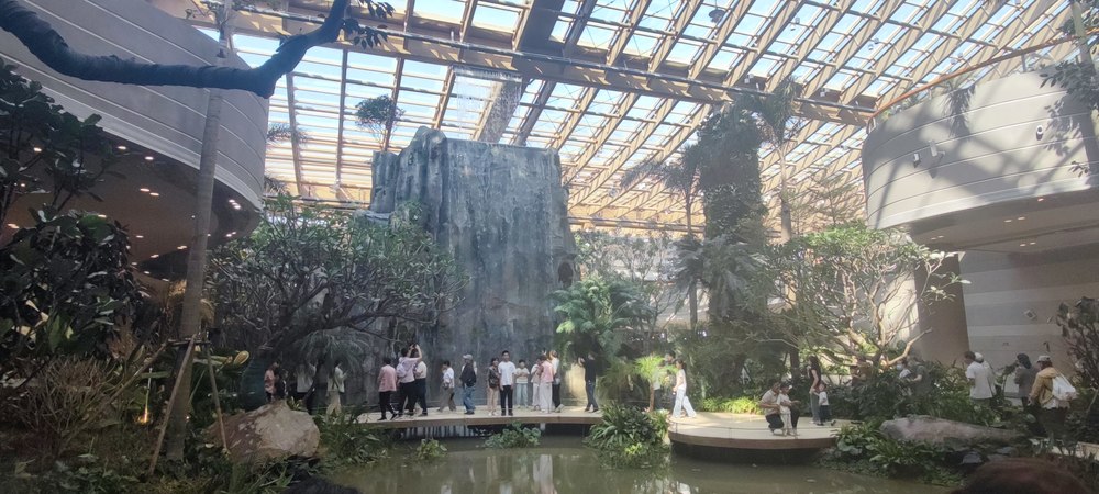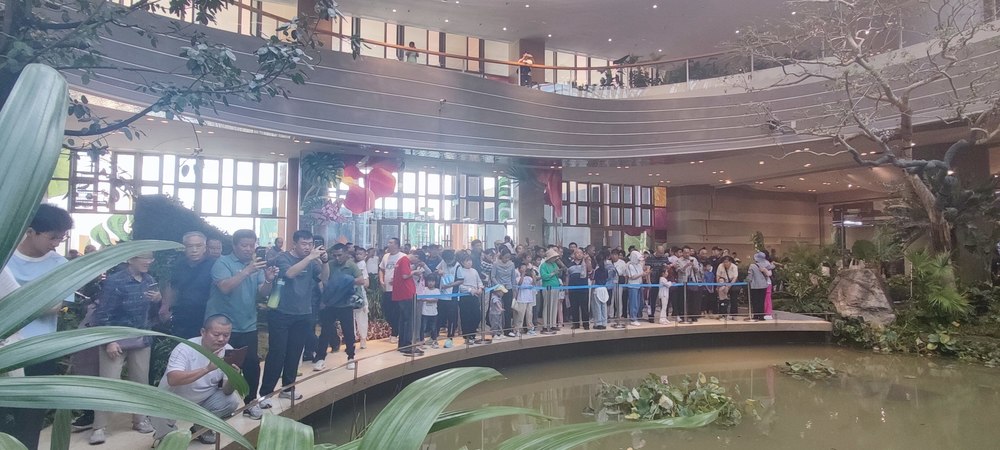 场馆内设置的“南洋绮梦”温室雨林馆也吸引众多游客打卡。该馆以新加坡滨海湾花园为蓝本,融合济南泉水文化意境,打造了热带绿植与水景艺术相交融的室内花园。花园内展出了来自新加坡的珍稀植物。“我看到这里面有猫眼竹芋、金钻蔓绿绒、富贵蕨等很多没见过的植物,我拍了照片要分享给小伙伴。”董浩小朋友兴奋地说。