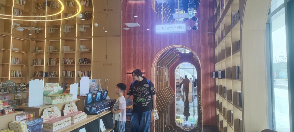 10月1日中午12:00,记者在现场看到,园区人气十足。作为山东首店,漫读理想谷书店吸引众多游客打卡。“游客进来的第一反应就是各种拍照,书店非常出片。今天从开门营业以来,游客络绎不绝,不少游客边喝咖啡边阅读。”漫读理想谷书店负责人秦林说。