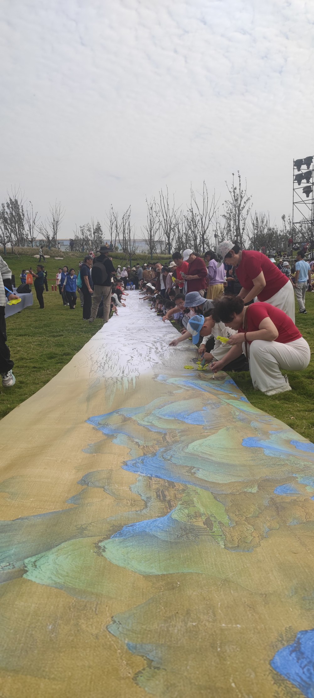 1日中午11:00,“鹊华新韵·起步新篇文艺汇演”举行,一系列精彩节目上演,《龙鼓舞》“龙”姿腾跃,相声《满堂彩》逗趣十足。特别是,在《百米长卷庆华诞》环节,邀请游客共绘百米《鹊华秋色图》,掀起活动高潮。众多孩童拿着彩笔在画卷上恣意绘画。家住鹊华九里居社区的李盼盼带着两个孩子认真作画。“我们就住在附近,得知开园过来逛逛,感觉这些文艺活动特别有意义。”李盼盼笑着说。