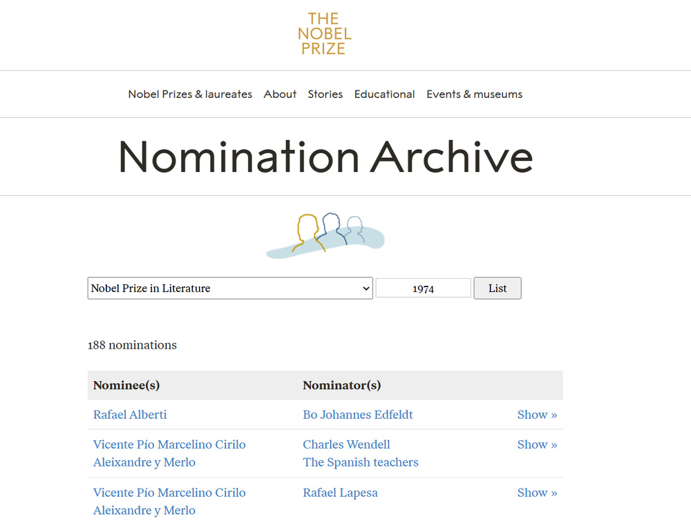 予以考虑的提名必须在次年1月底前提交,此后收到的信函被视为无效。筛选提名的工作由一位被称为文学管理员的官员负责。管理员将汇编一份包含当年所有有效提名的长名单,并将其转交给瑞典学院的诺贝尔委员会。委员会的成员除了准备极其全面的阅读和评估工作外,还必须具备吸收和讨论彼此意见的意愿和能力,因此,他们在春季安排了多次会议。