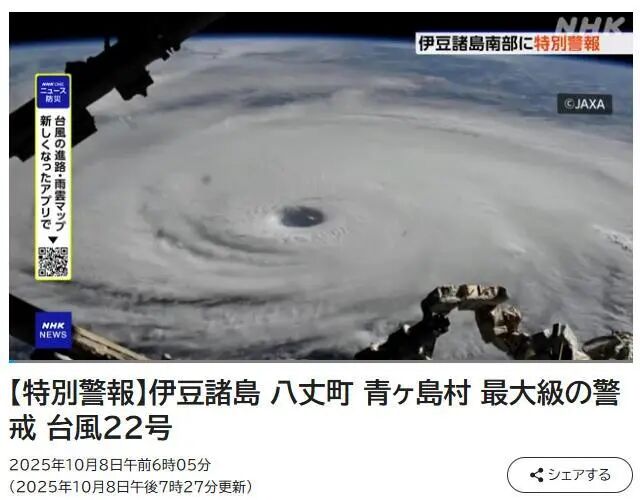 据日本广播协会(NHK)报道,2025年第22号台风“夏浪”将于当地时间9日凌晨至早晨接近日本伊豆群岛,日本气象厅已发布暴风与巨浪的特别警报,指出当地可能出现数十年一遇的大规模灾害。详情>>