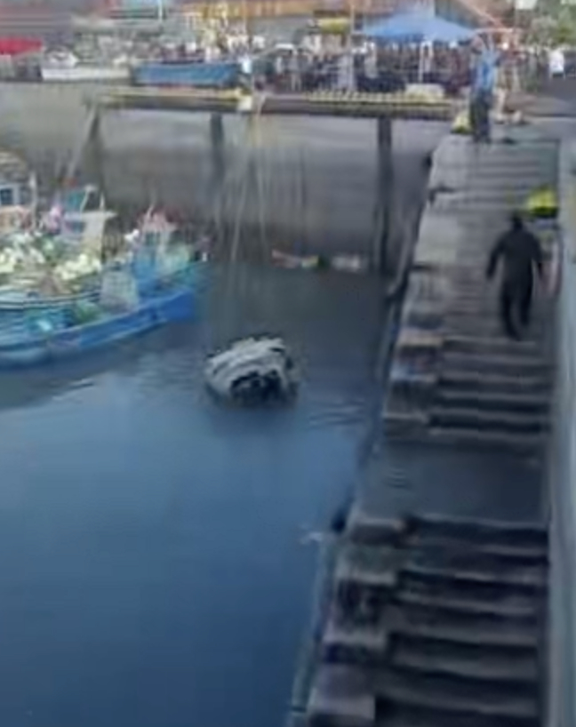 视频显示,事发时车辆以较慢速度行驶,靠近码头岸边时突然失控翻越路基坠海。据媒体报道,事发路段仅有30厘米高的路基石作为防护,夜间无照明和警示装置。驾驶员在车辆悬空时曾尝试刹车,但未能避免坠海。