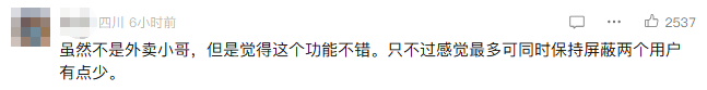 不过,也有人表示该功能,作用有限,“最终会安排其他骑手接单”