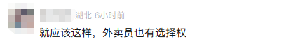 该功能引发网友热议,不少网友表示,“就应该这样,外卖员也有选择权”
