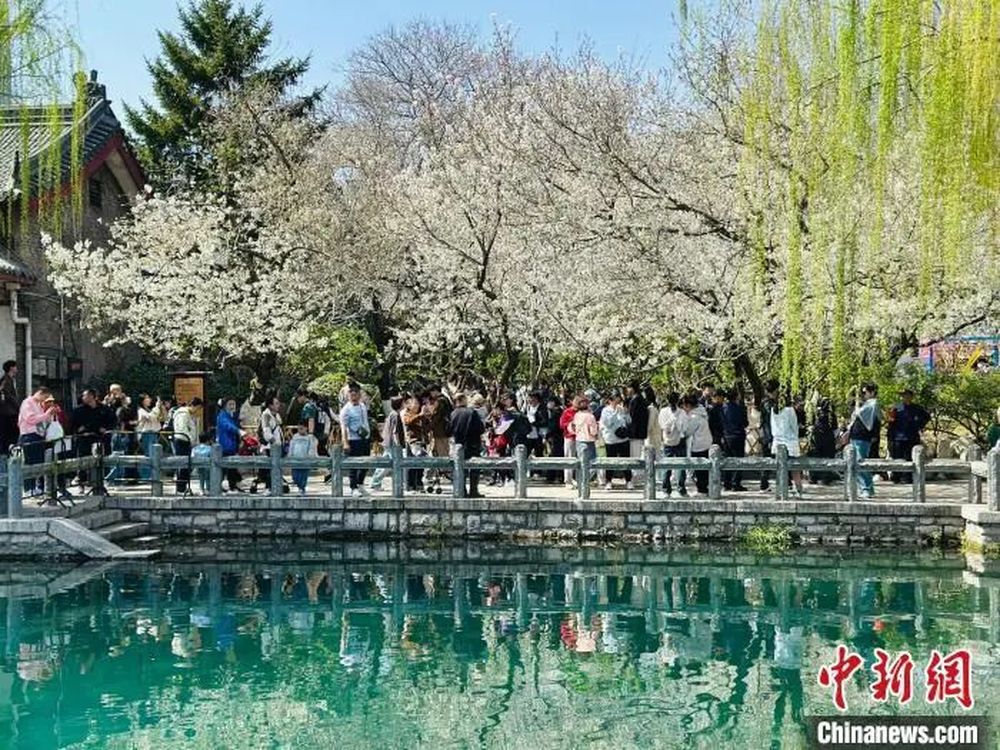 3月22日,济南天下第一泉景区五龙潭公园,第二十二届五龙潭樱花节启幕,市民游客前来踏青游玩、观景赏花。曲寓直 摄