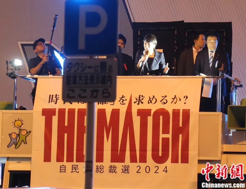 2024年,高市早苗作为自民党总裁选举候选人在东京发表演说。中新社记者 朱晨曦 摄