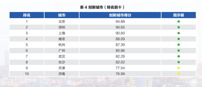 从单科成绩来看,在“创新城市”指标上,济南排名只是第十,得分是76.99,而前八名都是82分以上的优秀成绩。