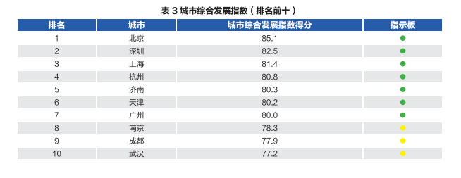 从总体排名来说,济南距离第四名杭州有0.5分的差距,距离榜首北京的差距则拉大到了4.8分。这是前有标杆。