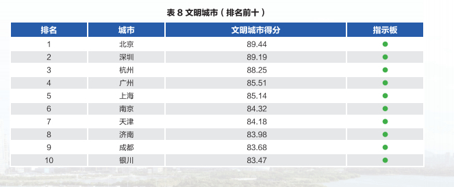 济南在这一项虽然排名第八,但前十名均是83分以上的优势科目,大家是齐头并进。