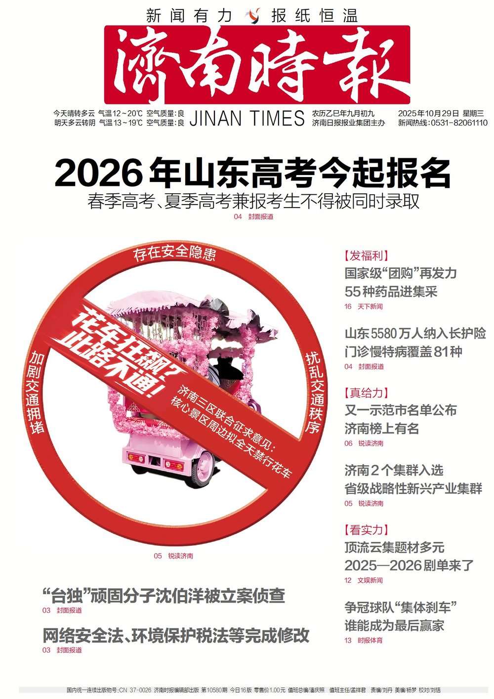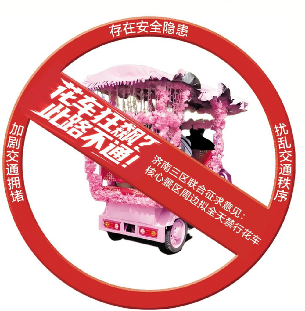 济南市历下区、市中区、天桥区三区政府联合起草了《关于景区周边禁止动力驱动三轮车、低速四轮车通行的通告(征求意见稿)》,拟对趵突泉、大明湖、泉城广场等核心景区周边道路实施全天24小时禁行措施,备受市民关注的花车乱象问题有望得到根治。详情>>