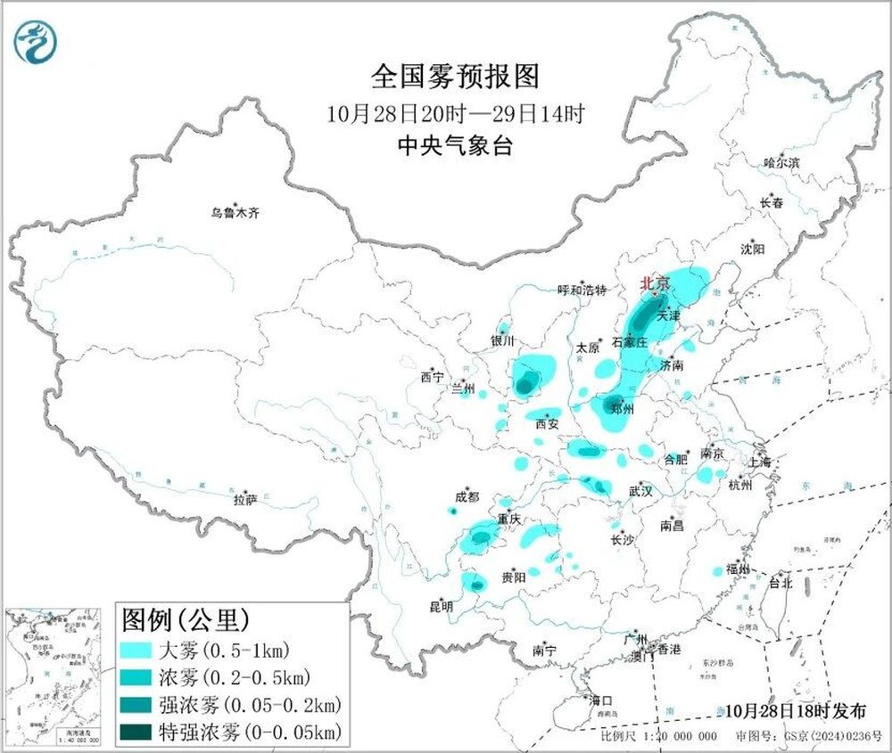 ●中央气象台28日18时发布大雾黄色预警,预计29日早晨,北京、天津、河北、甘肃东部、陕西中北部、河南中西部、山东西北部、湖北西部、贵州东部和西部等地的部分地区有大雾天气。