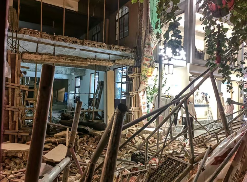 新黄河探访湖南长沙坍塌商铺现场:已解除封锁,周边商户推测施工不专业