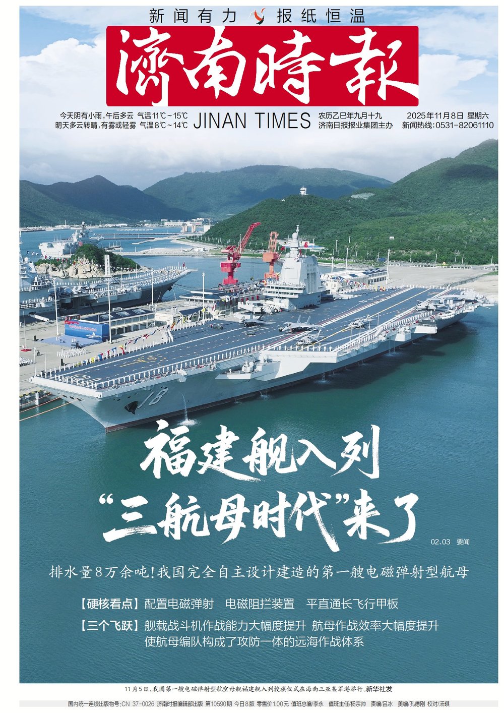 ●我国第一艘电磁弹射型航空母舰福建舰入列授旗仪式5日在海南三亚某军港举行。中共中央总书记、国家主席、中央军委主席习近平出席入列授旗仪式并登舰视察。