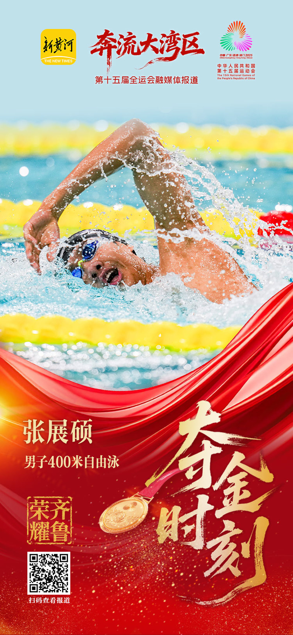 11月10日,第十五届全运会游泳比赛拉开战幕。在备受瞩目的男子400米自由泳决赛中,来自山东的18岁小将张展硕表现惊艳,以强劲的冲刺能力力压潘展乐、孙杨、费立纬等一众名将,以3分42秒勇夺金牌。
