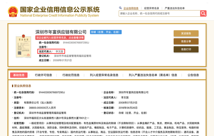国家企业信用信息公示系统显示,深圳年富法定代表人为李文国,年富系上市公司宁波东力全资子公司,宁波东力实际控制人为宋济隆、许丽萍。辩护律师称,徐莘栋仅为深圳年富多名副总裁之一,其决策权限受公司管理结构及风控体系制约,与“实控人”定位不符。徐莘栋也在庭上陈述,自己非公司董事,与宁波东力实控人无亲属关系,仅在公司收购期间有数面之缘。