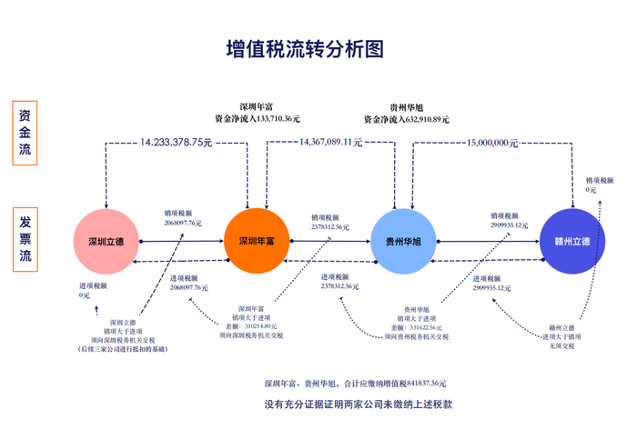 起诉书显示,涉案链条中深圳立德、深圳年富、贵州华旭及赣州立德累计开具专票,税额206万至290万余元不等,各环节均抵扣进项税。