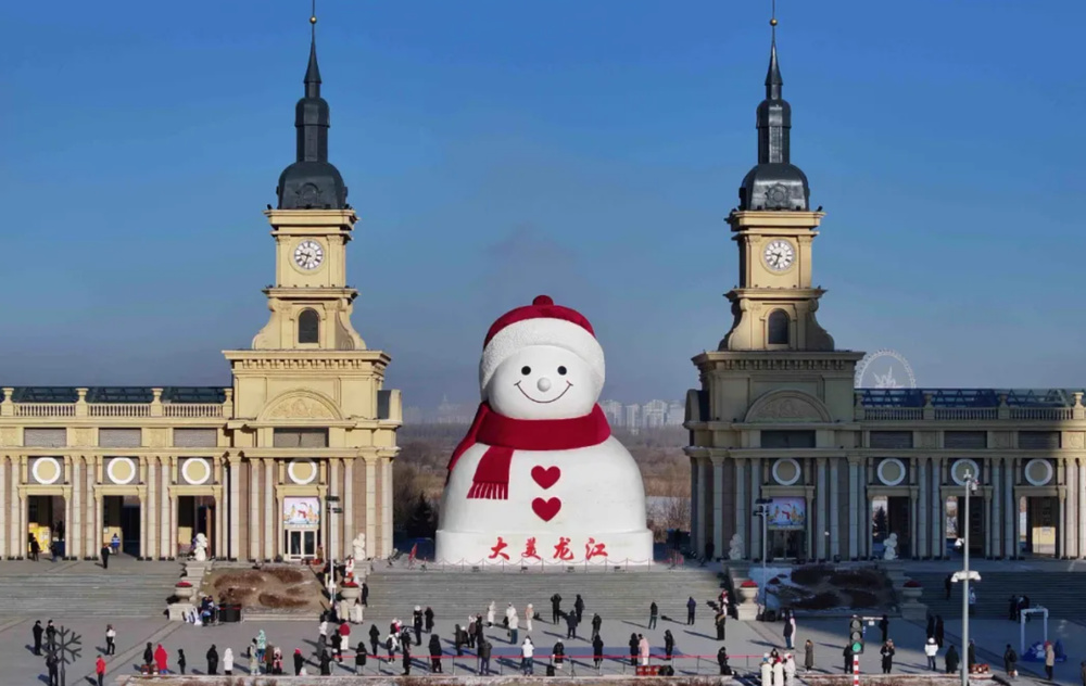 ●16日,哈尔滨网红大雪人建成回归。今年的大雪人身高增至19米,体态更为圆润饱满。