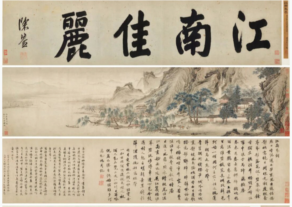 庞莱臣后人捐给南京博物院的明代仇英 《江南春》图卷(局部),2025年出现在北京一拍卖公司预展中