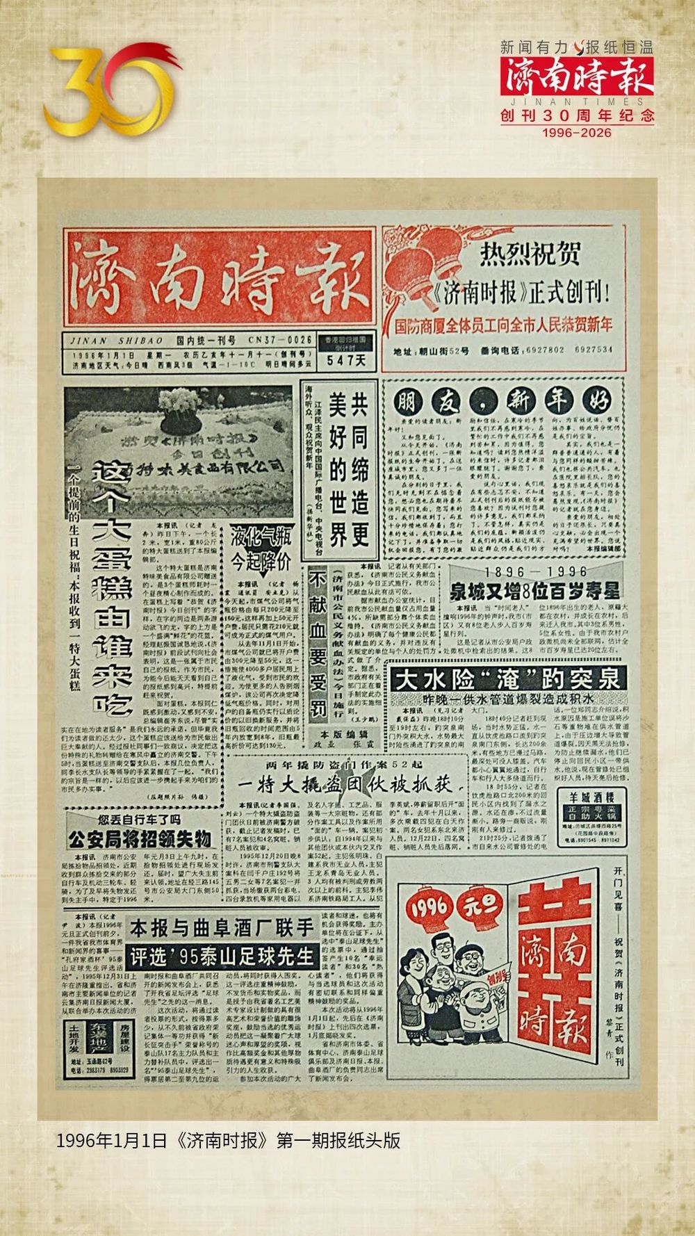 据活动主办方介绍,23日的“《济南时报》创刊30周年品牌荣耀之夜”主题飞行将以沉浸式光影叙事手法,回溯《济南时报》初心如磐的岁月荣光。自1996年带着油墨书香启航,《济南时报》始终紧跟时代步伐,铿锵前行。30载风雨兼程,纸端承载的民生温度、笔尖镌刻的责任担当、读者相伴的温暖时光,皆化作前行路上的璀璨繁花,见证着一份报纸与一座城市的深情相守、并肩成长。