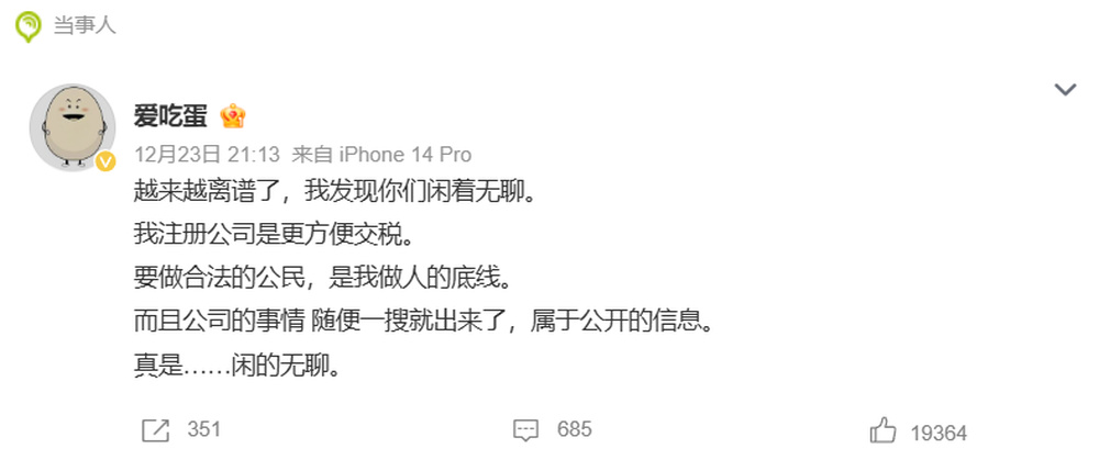 据红星新闻,针对“急于变现”的质疑,冯昌绪公开回应,注册公司的核心目的是“方便交税”,强调“做合法公民是做人的底线”。