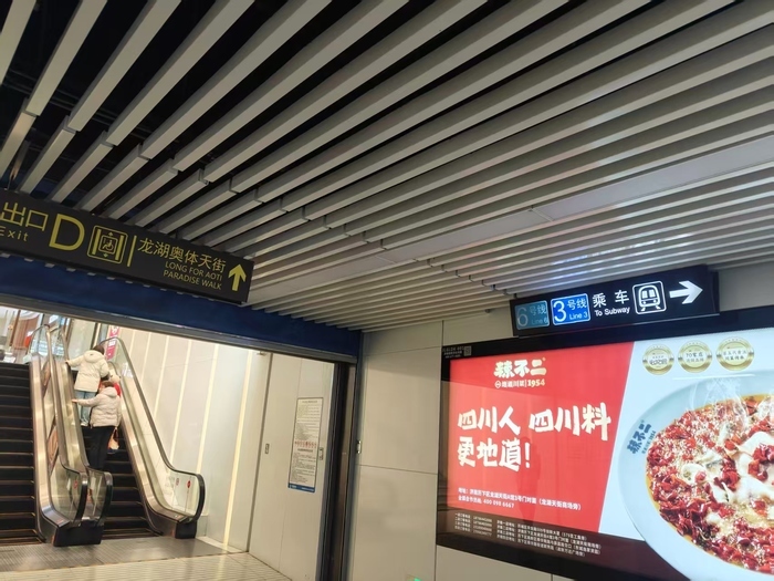 在站内探访时,记者发现安成街站地下站点的各出入口分布覆盖不同出行与消费场景。其中,部分出入口位于奥体西路两侧,方便市民往返周边居民区与写字楼;部分出入口直接连通商业综合体,另有出入口与地下超市相通。市民从地铁出站后,无需经过地面道路,即可直接进入商场内部及地下超市,实现“一步到店、一步到‘胃’”的消费出行体验。
